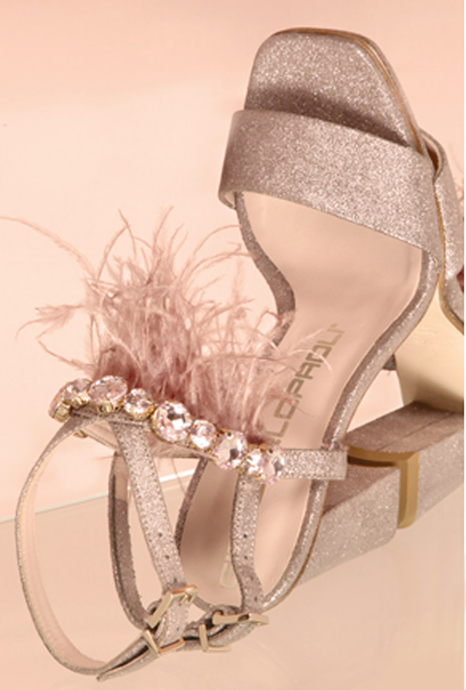 Glamorously rich “jewelery” shoes, with unexpected colors that give a unique look