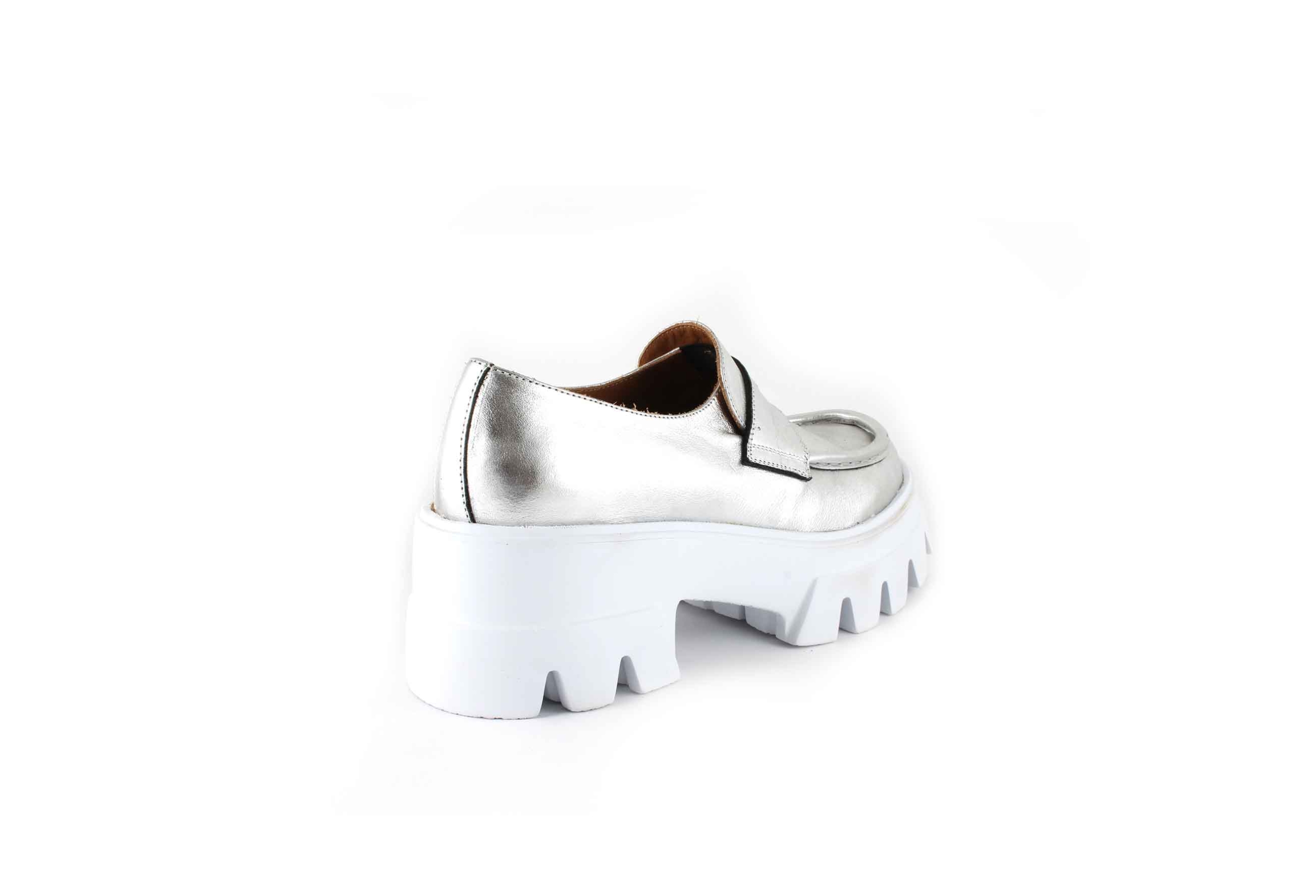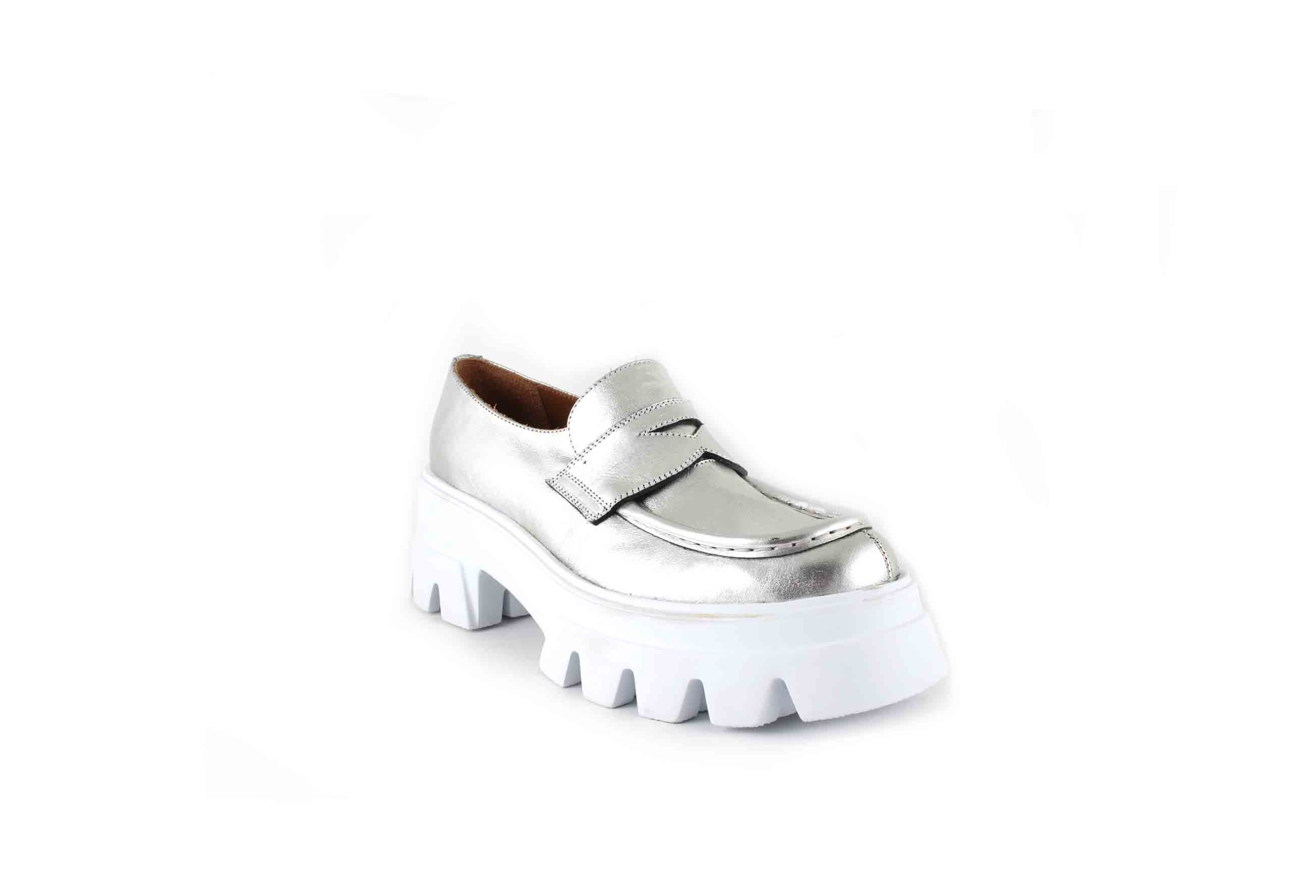 Mocassino in pelle color argento